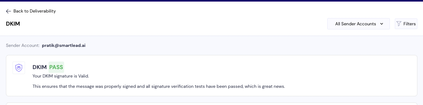 SmartDelivery - Smartlead's Email Deliverability Suite: To send test emails and receive detailed DKIM feedback.