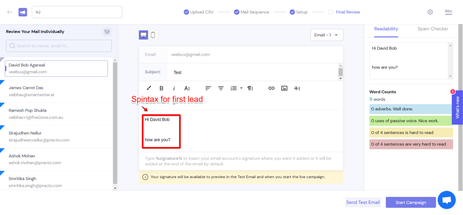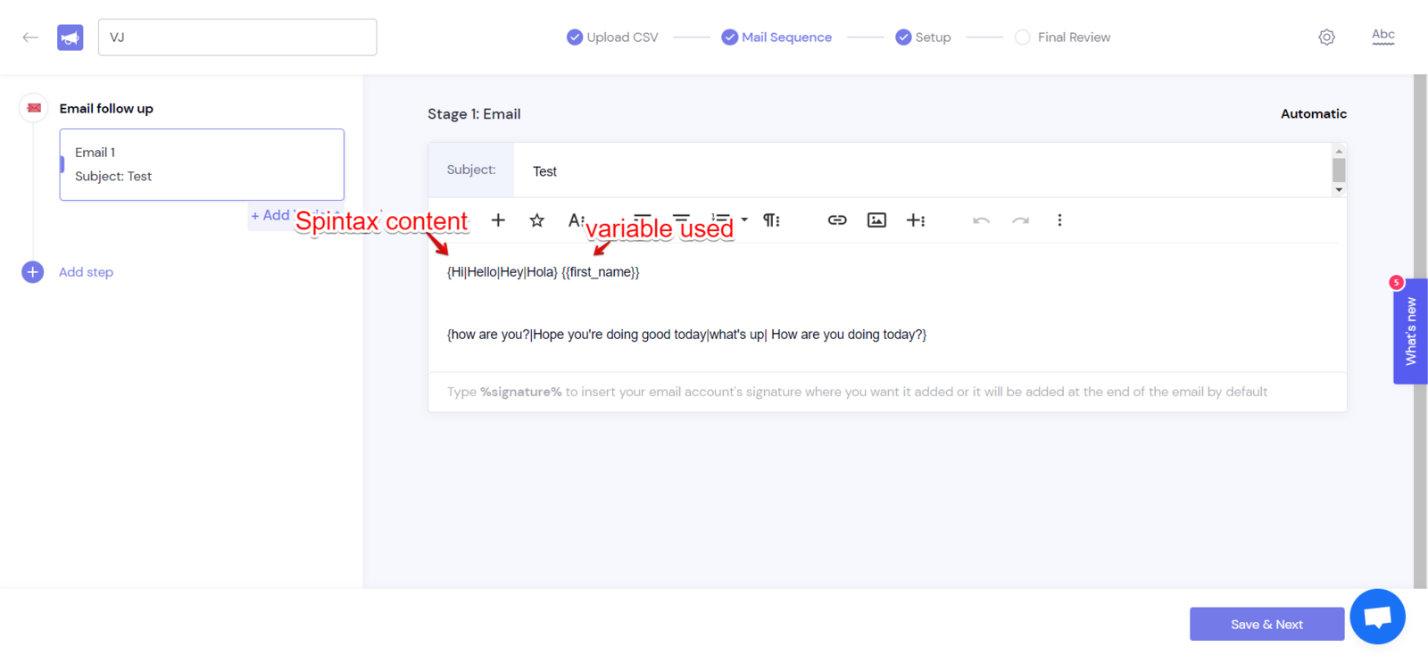 The game of cold emailing is to “trick” ESPs (email service providers) into thinking you’re sending emails with genuine intention and looking to engage in conversation. So spintax allows for that as even though a percentage of the email will be the same, having microcopy differences improves the deliverability of your email with 0/minimal extra effort.