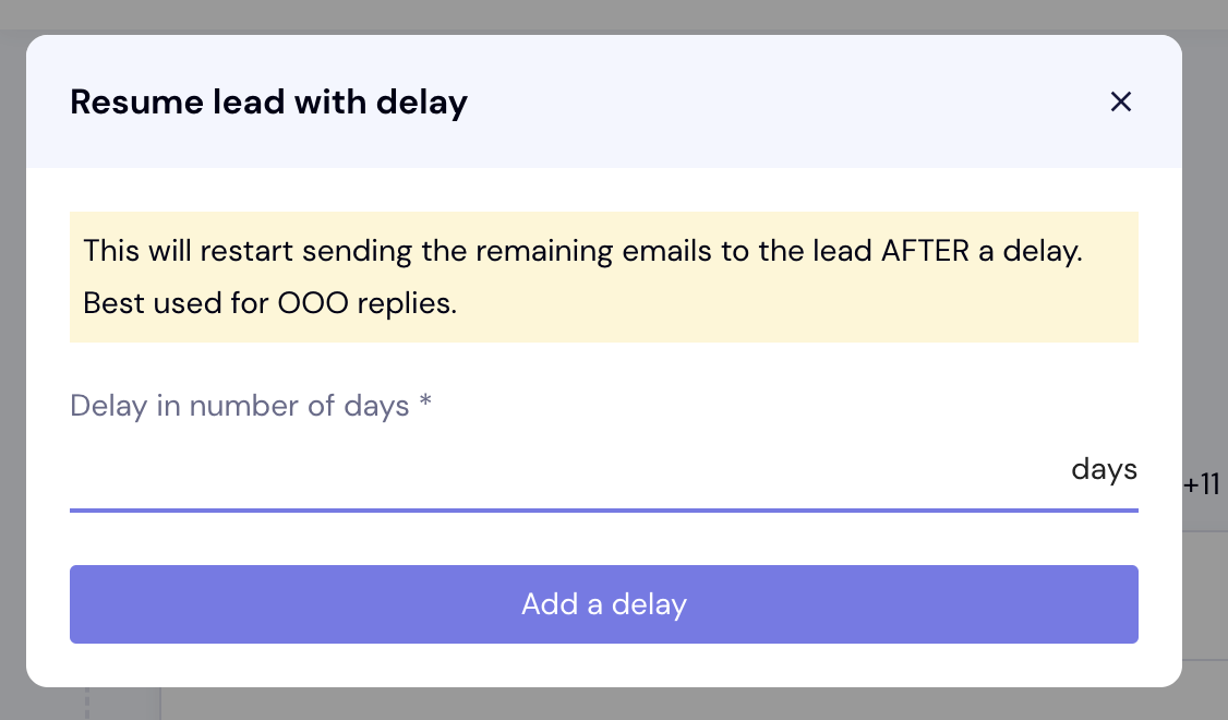 1.b) Select the number of days you want to delay and restart the sequence for the lead.